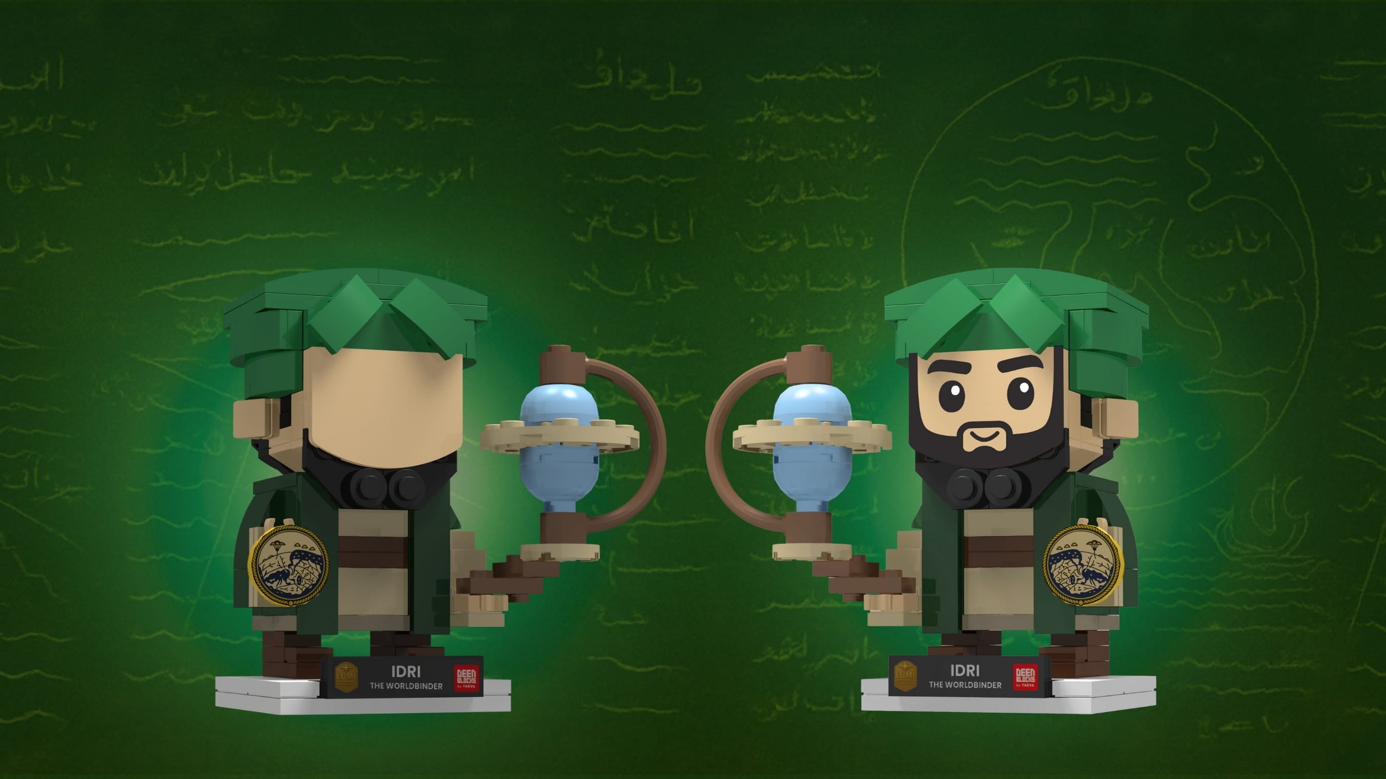 Open the box, build the figure, then scan the QR to open a simple manual and a short profile about al-Idrisi. Clear wording helps kids remember the key points.